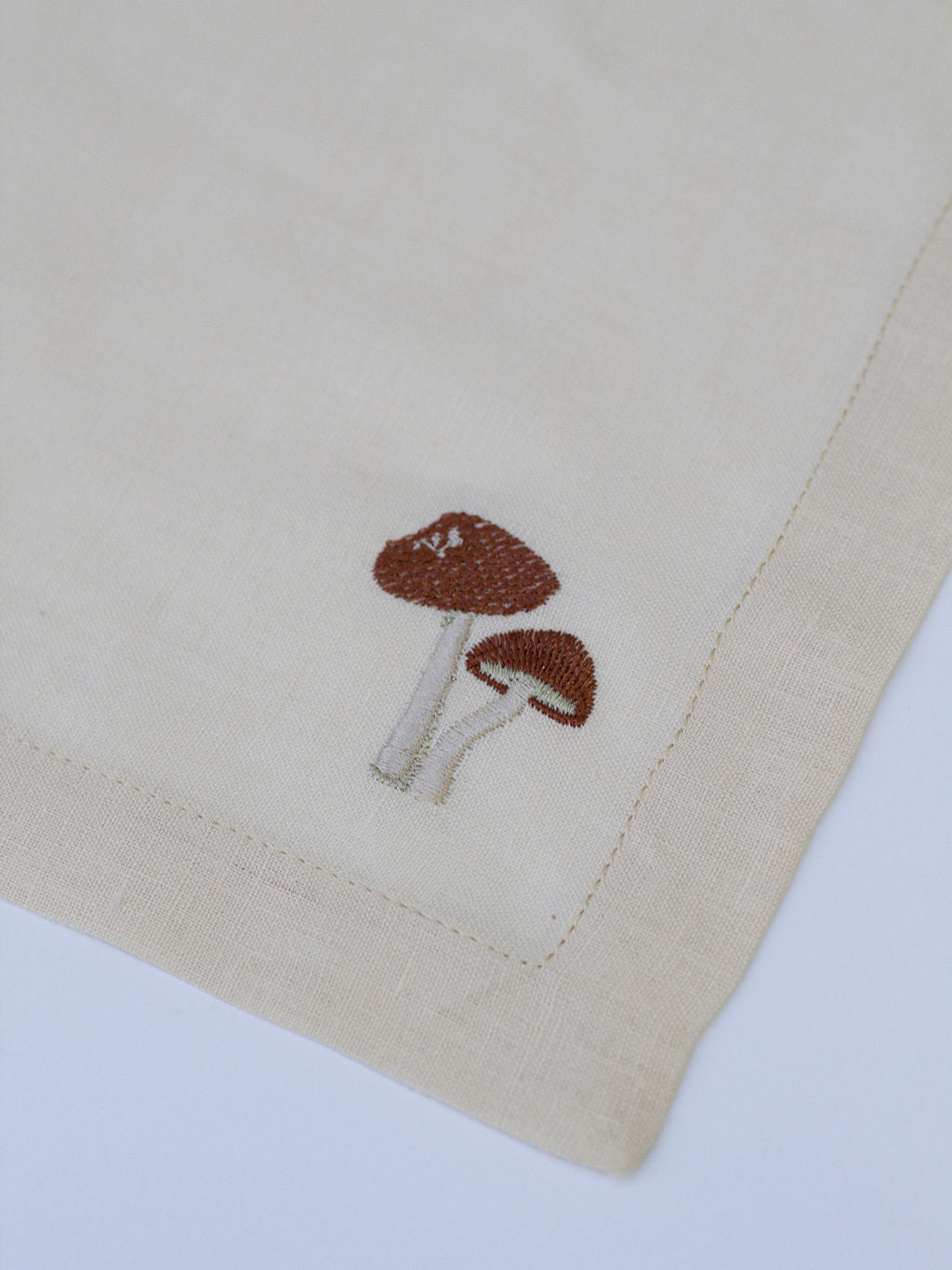 Mantel individual 100% lino con bordado Forage, inspirado en los hongos silvestres del bosque. Perfecto para quienes buscan un detalle natural y sofisticado.
